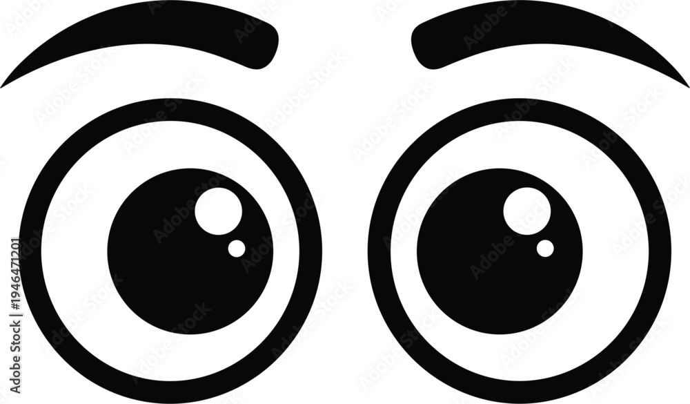 Cartoon Eyes with Eyebrows Expression Icon, Cute Comic Eye Symbol for Emoji, Character Design, and Facial Expression Vector Illustration #1946471201