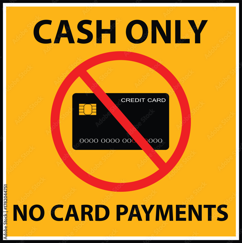 Cash payments only no card payments warning sign. Cash only no card payments symbol. No debit or credit card. flat style. #1782044751
