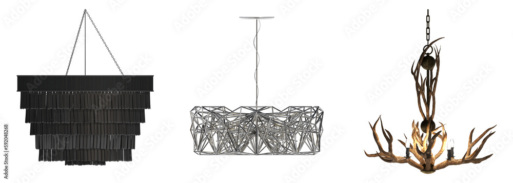 chandelier on the ceiling isolated on transparent background, hanging lamp, pendant light, 3D illustration, cg render #592048268