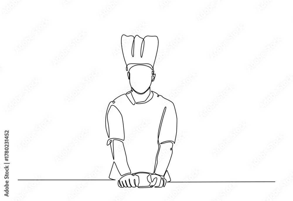 Chef rolling out cake dough in continuous one line drawing. Single line art illustration of chef preparing food. Editable vector. #1780231452