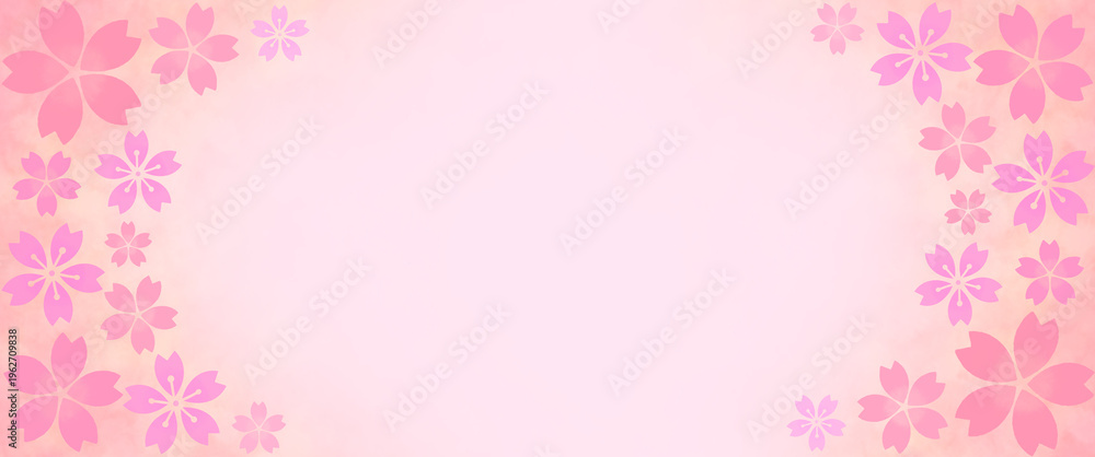 桜のフレーム 枠 バナー 和 素材 おしゃれ シンプル 和風 パステルカラー 抽象的 和柄 見出し タイトル ひな祭り 入学 年賀 横長 Cherry blossoms cute frame.Pink banner.Watercolor spring background. #1962709838