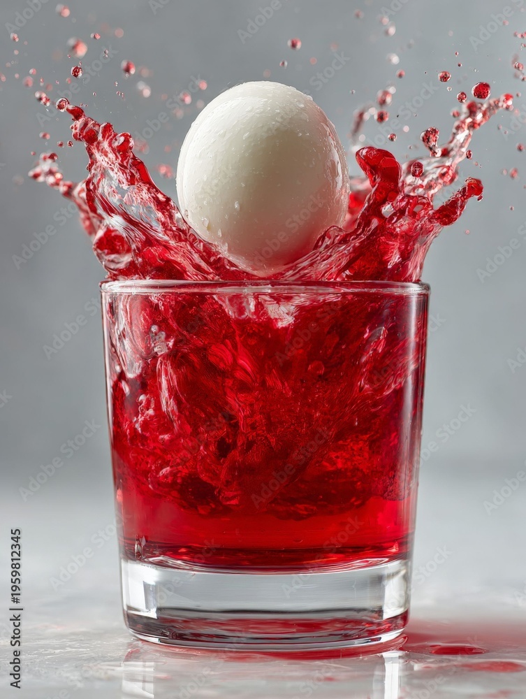 Cherry Burst: The moment a sphere plummets into a cocktail, creating a vibrant splash of deep red that embodies the refreshing essence of a mixed drink, with droplets gracefully dancing in the air. #1959812345