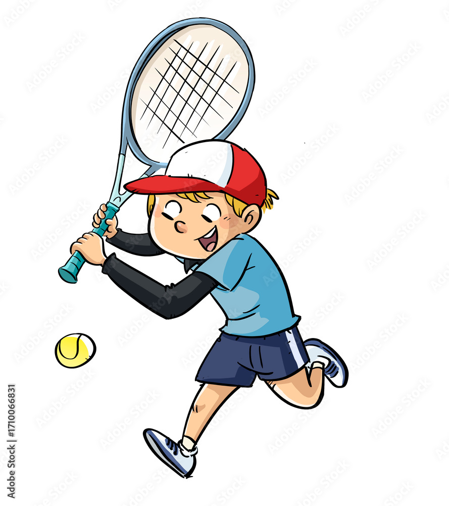 Child tennis player with racket and ball #1710066831