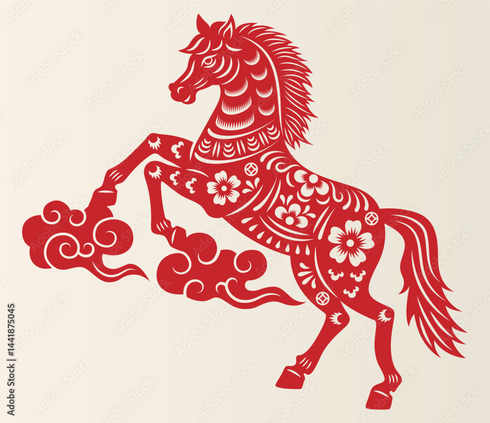 Chinese New Year papercut of the zodiac sign for the Year of the Horse. #1441875045