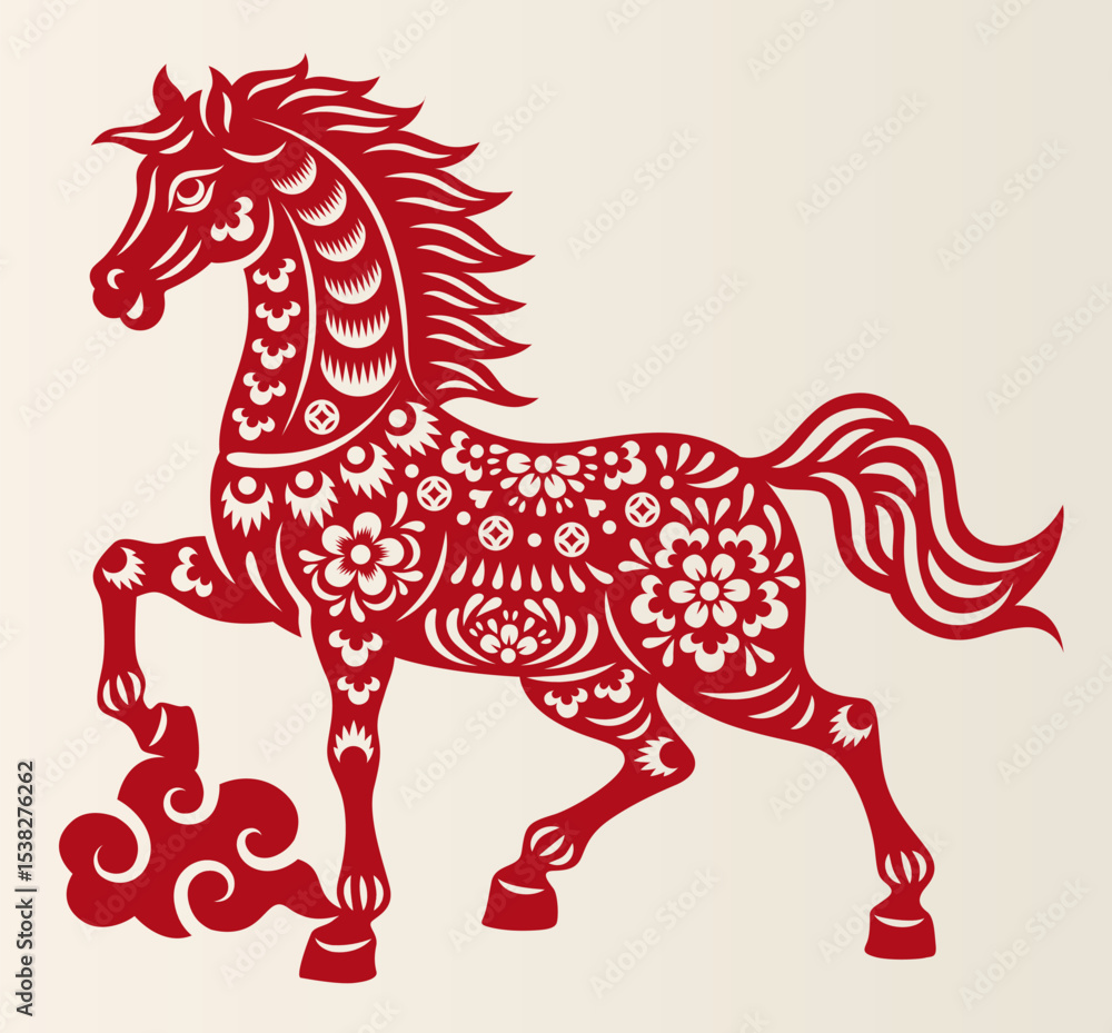 Chinese New Year papercut of the zodiac sign for the Year of the Horse. #1538276262