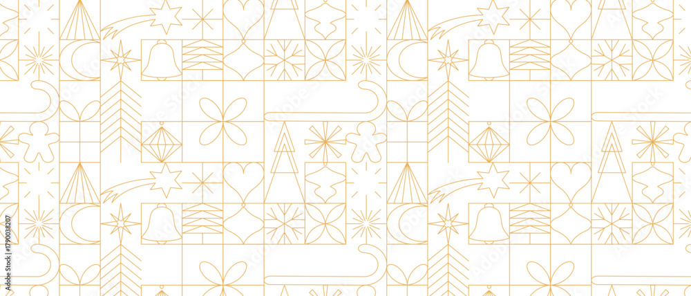 Christmas background, gold geometric icon seamless pattern #1790038207