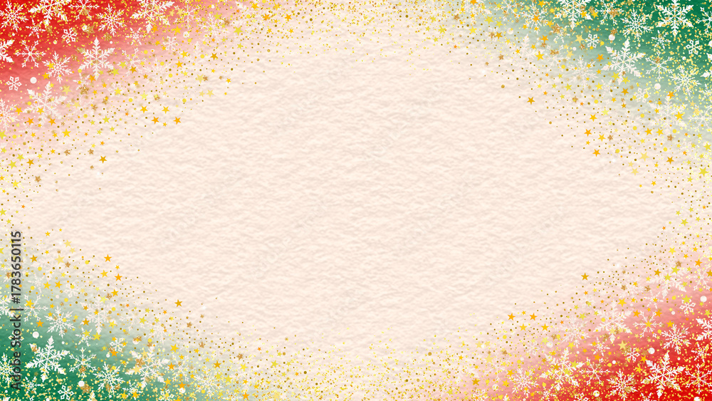 クリスマス 雪の結晶 枠 16:9 素材 おしゃれ ポップ ラメ キラキラ 金粉 シンプル 抽象的 和紙 タイトル 見出し キャンペーン ギフト Christmas,New Year.Abstract red and green vintage frame. #1783650115