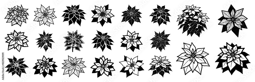 Christmas poinsettia flower vector set featuring hand drawn holiday floral elements and winter plant blooms #1829029091