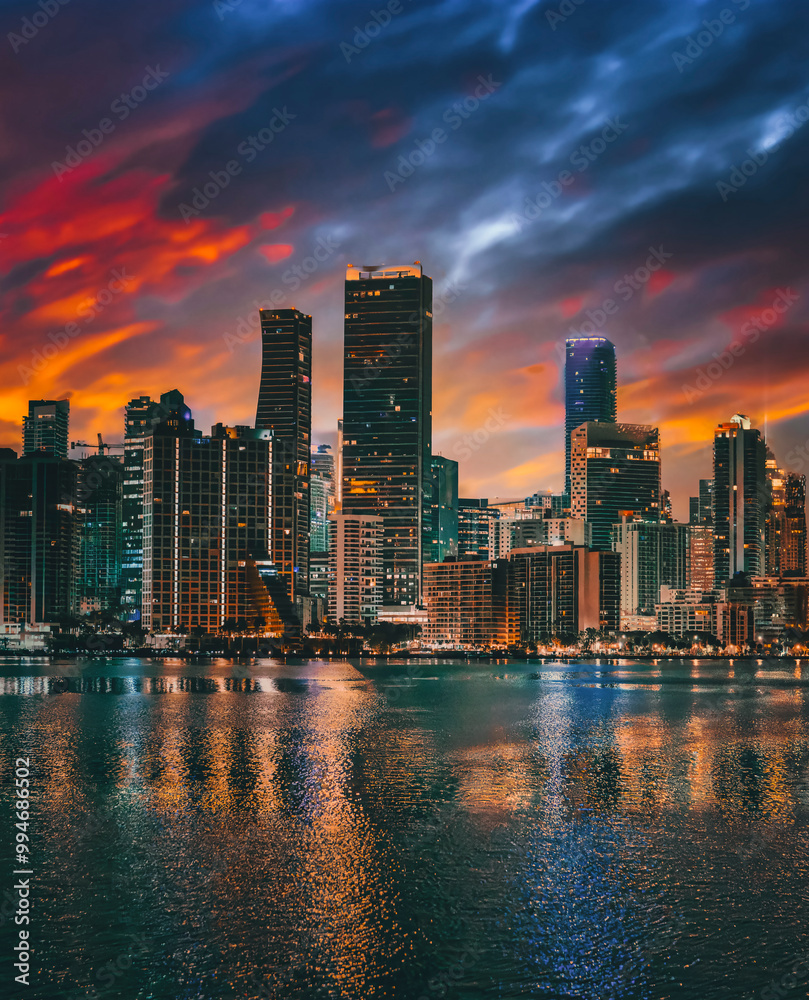 city skyline at night miami Florida #994686502
