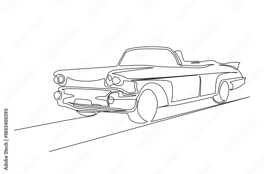 Classic retro car in continuous one line drawing. Single line art illustration of Vintage Car. Editable vector. #1803400393