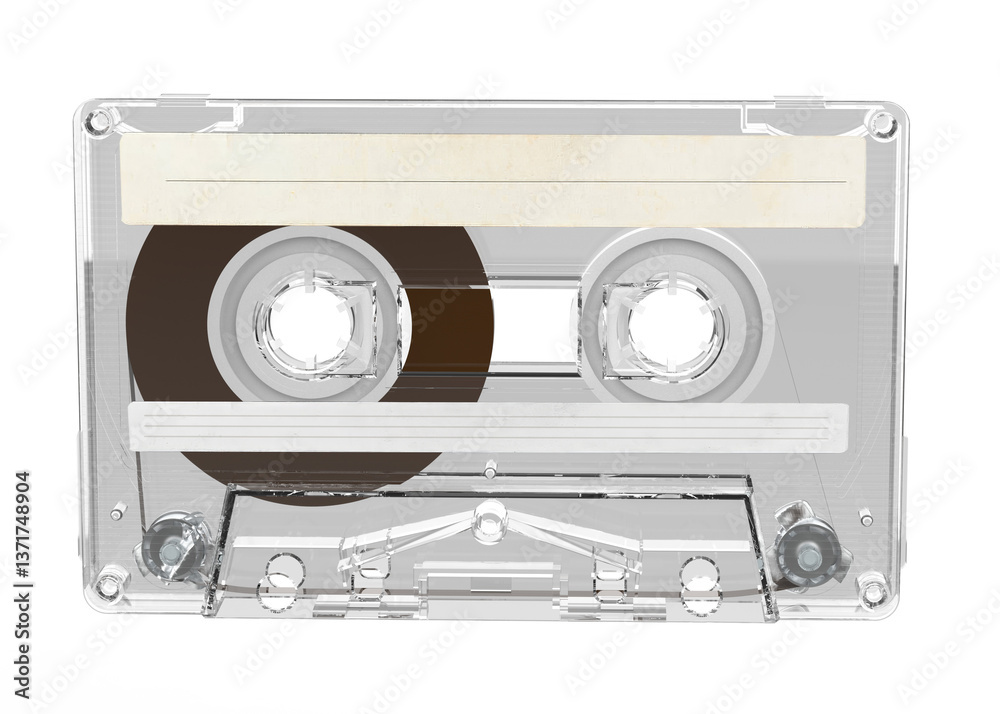 Clear Cassette Tape isolated. Vntage audio tape cassete on transparent background. #1371748904