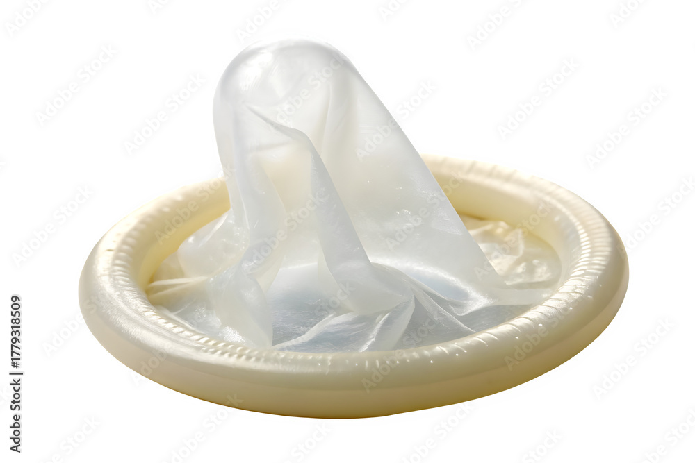 Close up of a white condom isolated on transparent background #1779318509