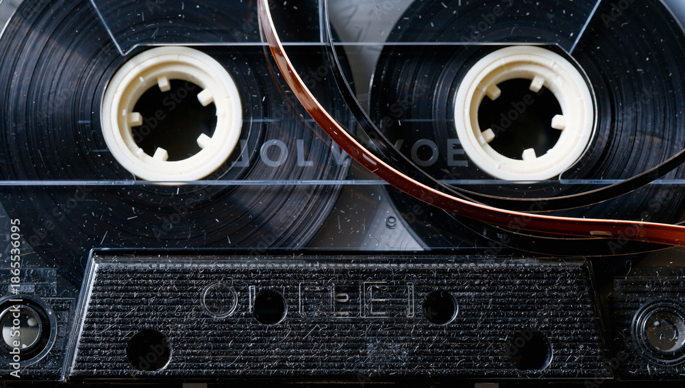 Close-up of Cassette Tape Reels and Mechanism #1865536095