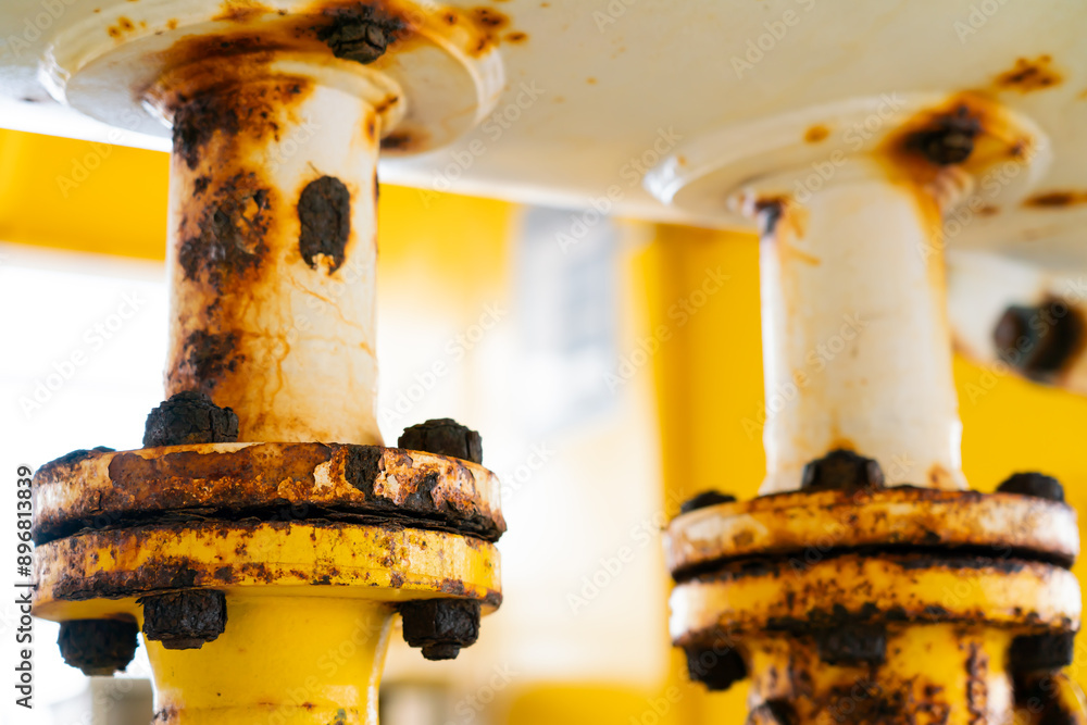 Close-up of corroded steel pipe, corrosion of steel, general corrosion, offshore petroleum pipelines. #896813839