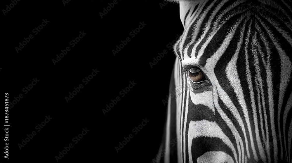 Close-Up Portrait of a Zebra in Monochrome #1873451673