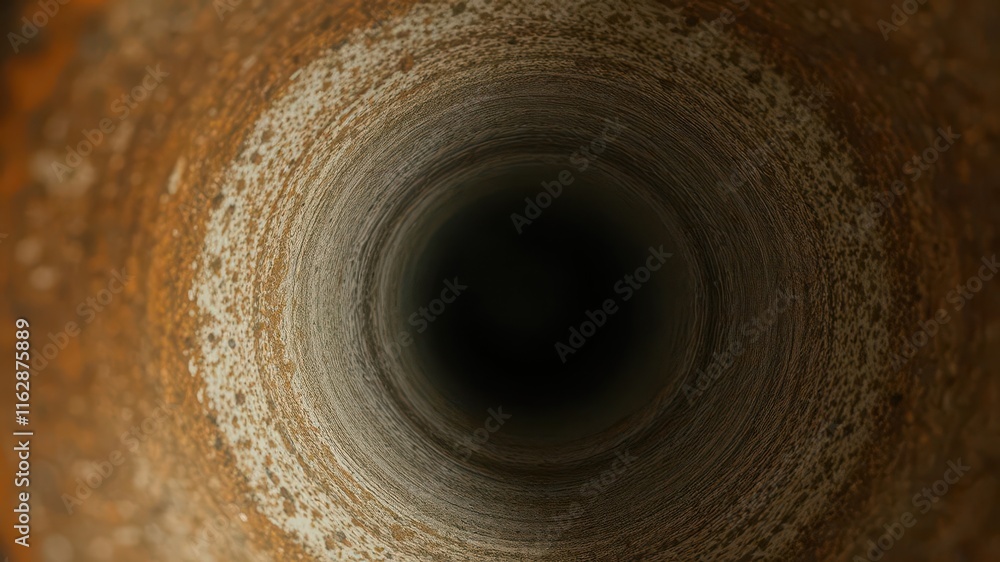 Close-up view of the interior of a plumbing pipe, showing texture and potential corrosion, worn, inside #1162875889