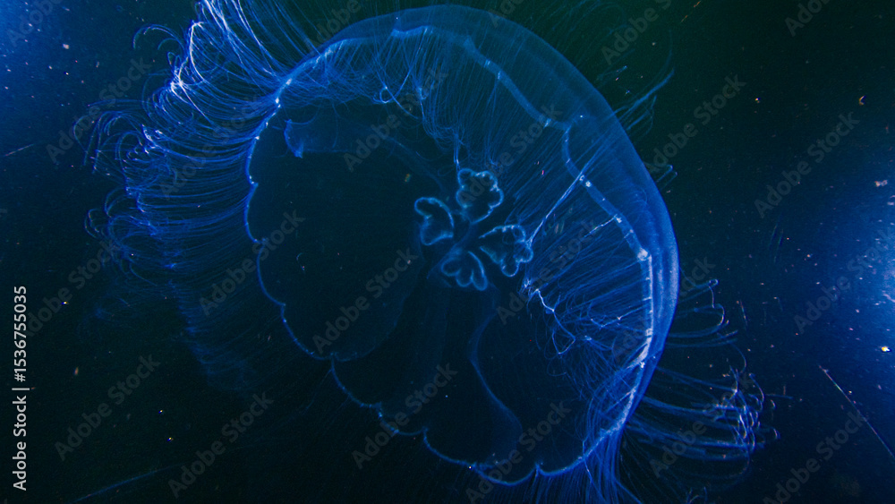 Close up view of the stingless jellyfish swimming underwater in the lake in West Papua, Raja Ampat, Indonesia #1536755035