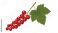 Cluster of bright red currants hangs from a thin stem with a large green leaf against a plain white background. #1946727449