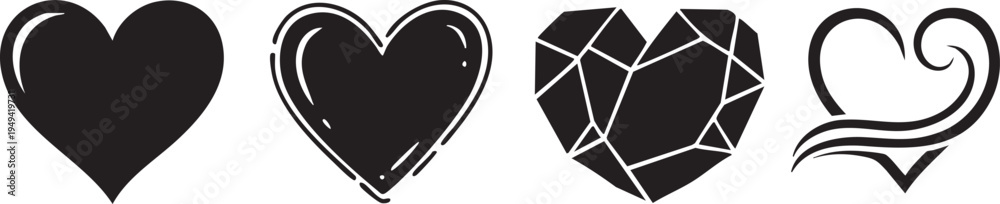 Collection of four distinctive black heart shapes with unique designs #1949419731