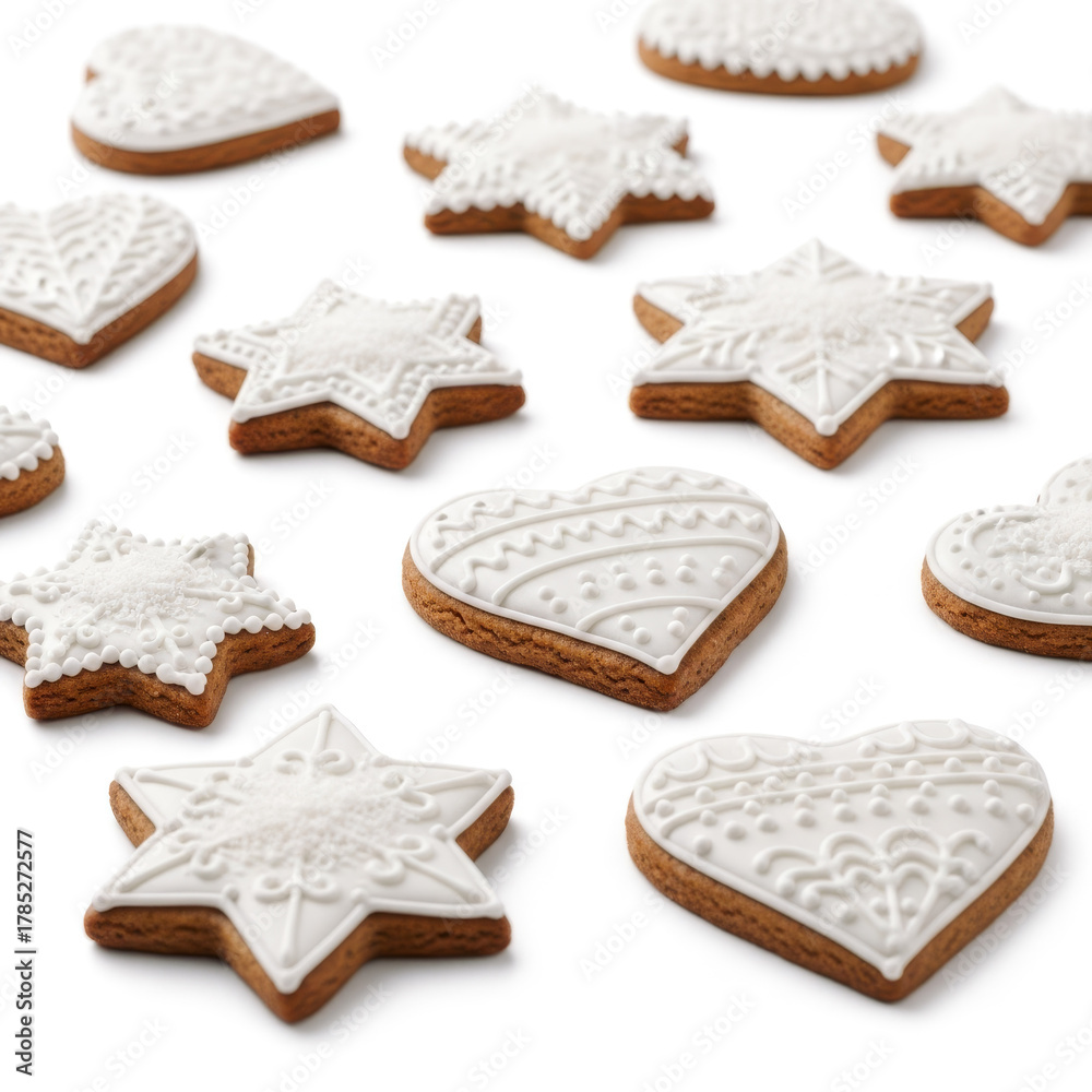Collection of Gingerbread Heart and Star Cookies with White Icing #1785272577