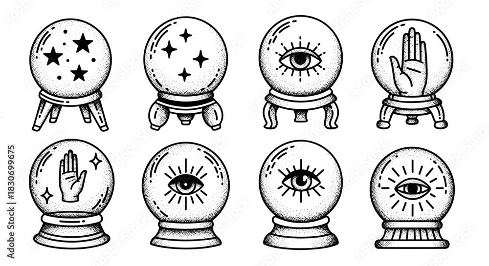 Collection of Mystical Crystal Balls with Esoteric Symbols. #1830699675