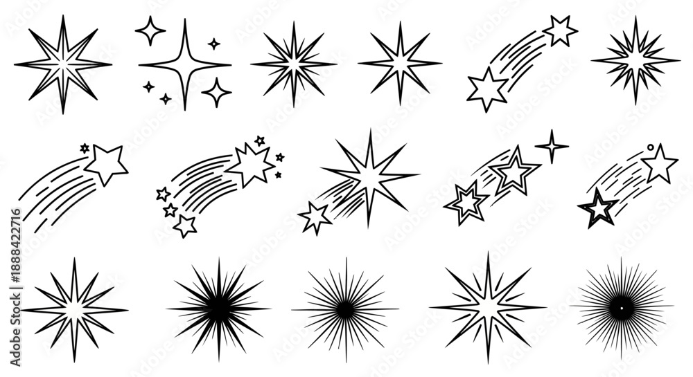 Collection of Star Icons and Shooting Stars, Twinkling Stars, Sparkle and Shine Symbols #1888422716