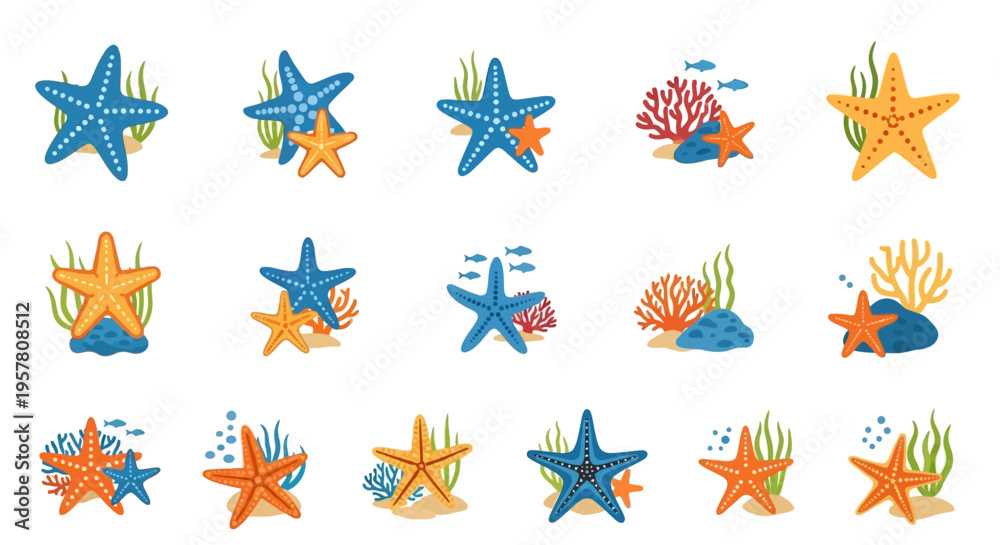 Collection of starfish and sea creatures. #1957808512