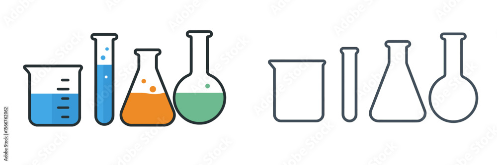 Colorful chemical laboratory glassware in use during science experiments showcasing vibrant liquids and various flask shapes #1566762062