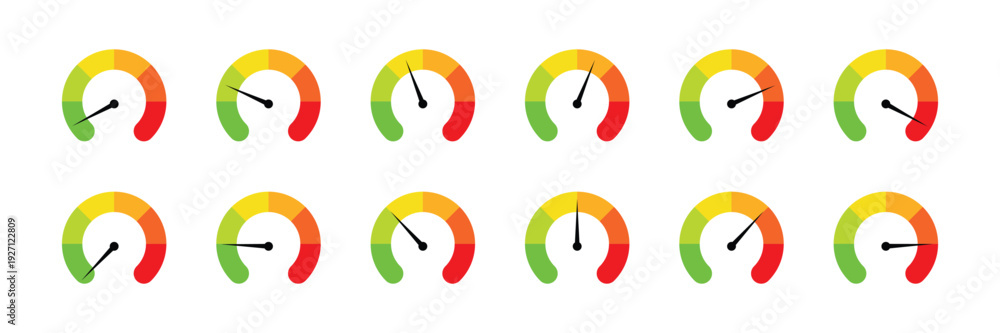 Colorful gauge indicator icons showing level, speed, and performance measurement symbols. #1927122809