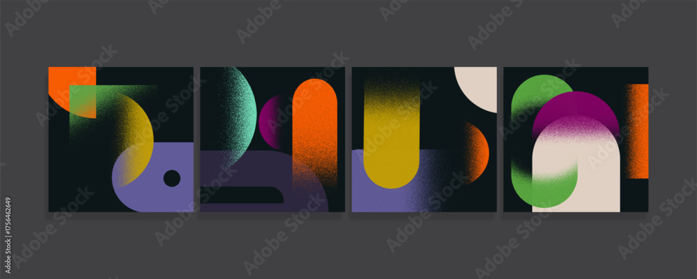 Colorful minimal geometric composition on dark background. Trendy vector illustration. #1756462649
