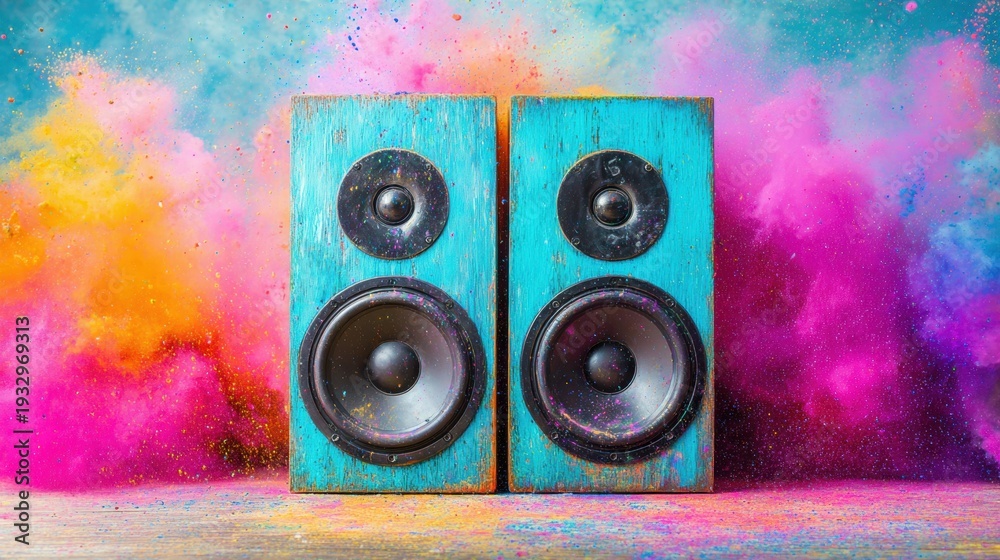 Colorful smoke and speakers create a vibrant scene for a music event #1932969313