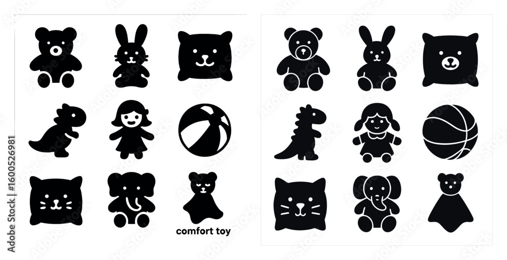 Comfort toys silhouette icons set – solid, filled, plush and cuddly symbols #1600526981