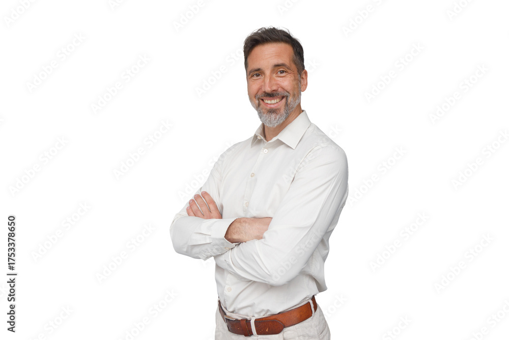 Confident mature businessman smiling, standing with arms crossed, portraying executive success and professionalism #1753378650