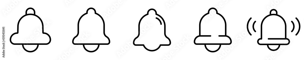 Conjunto de iconos de campana. Concepto de notificación, sonido y alarma. Nuevo mensaje. Ilustración vectorial #593413841