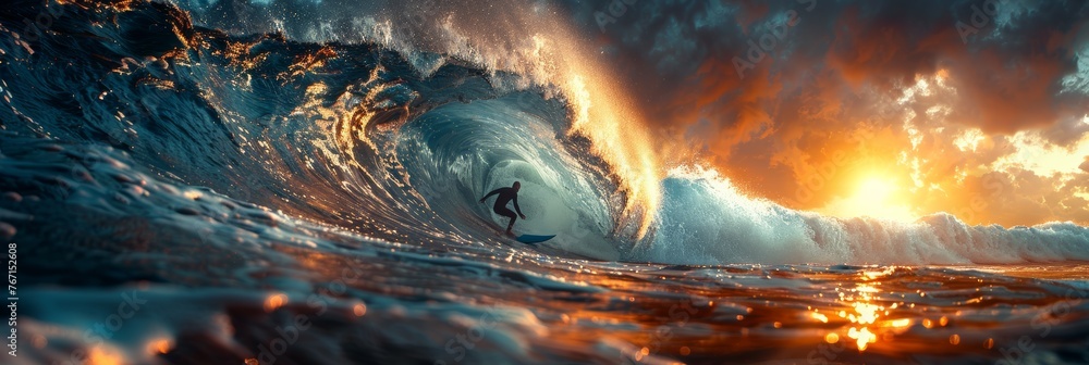 Conquering the surf: skilled surfer braves massive wave peaks #767152608