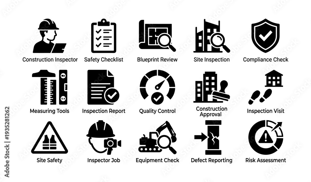 Construction inspection icons for safety, compliance, and quality control #1935281262