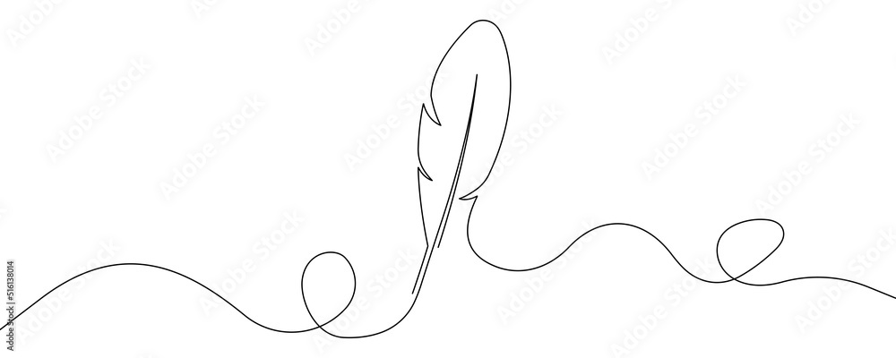 Continuous hand drawn for bird feather on white background. Abstract vector illustration. Vector 10 EPS. #516138014