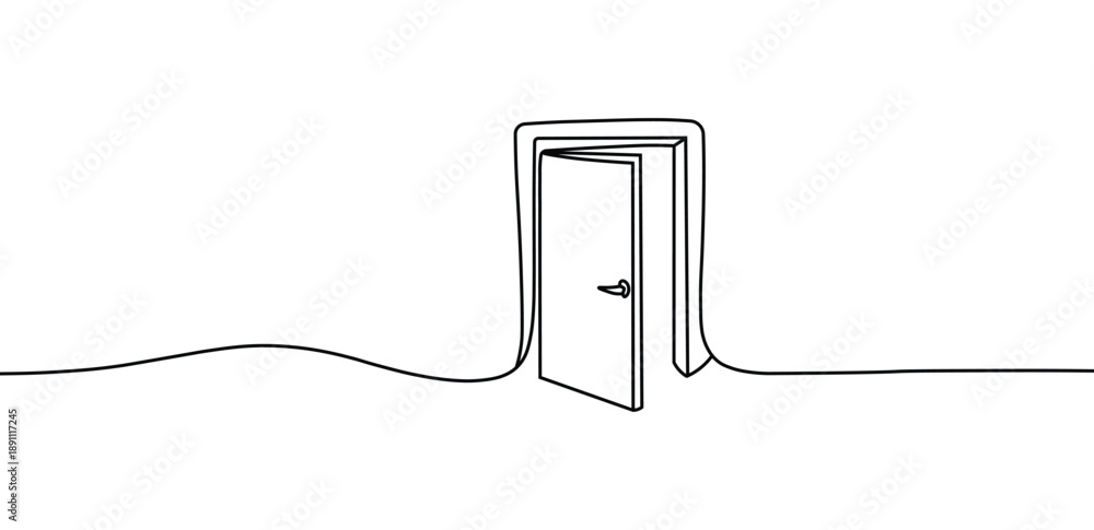 Continuous line drawing door slightly open new opportunity vector illustration artwork #1891117245