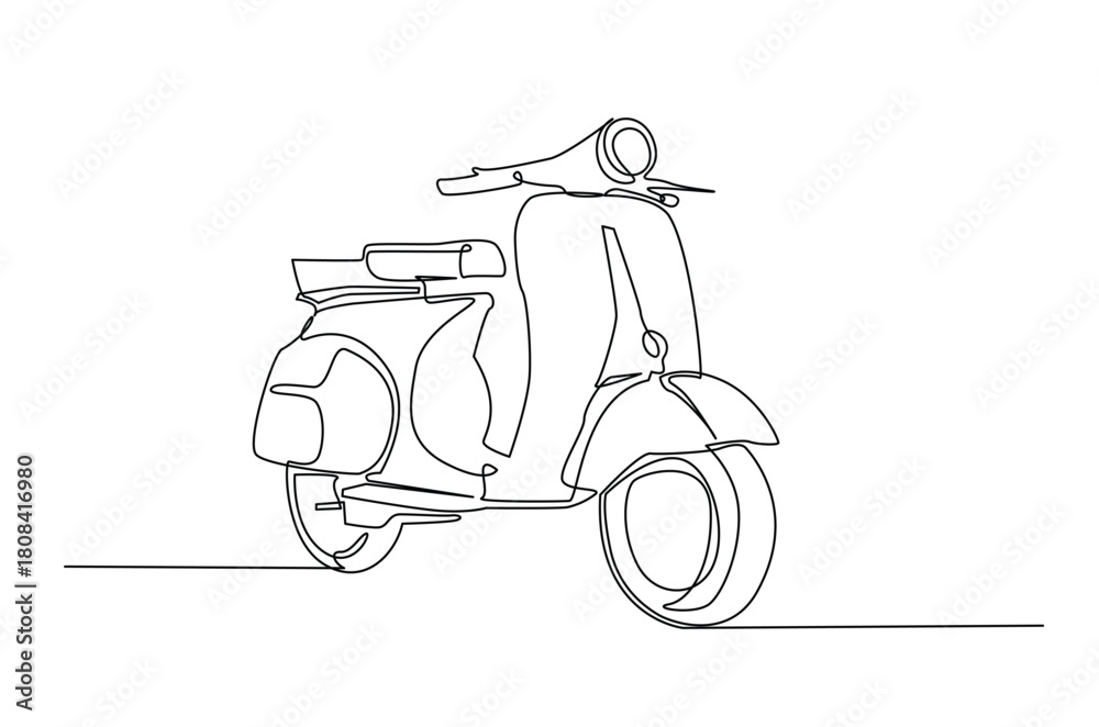 Continuous one line drawing Retro Scooter. Vintage Scooter in single line art illustration. Editable vector. #1808416980