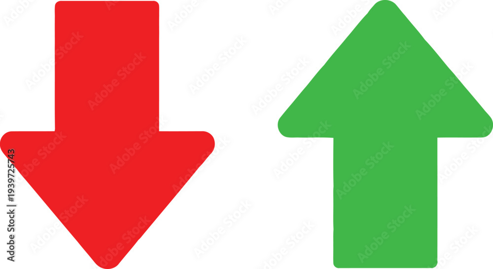 Contrasting arrows indicating opposite directional movements with red down and green up. Vector #1939725743