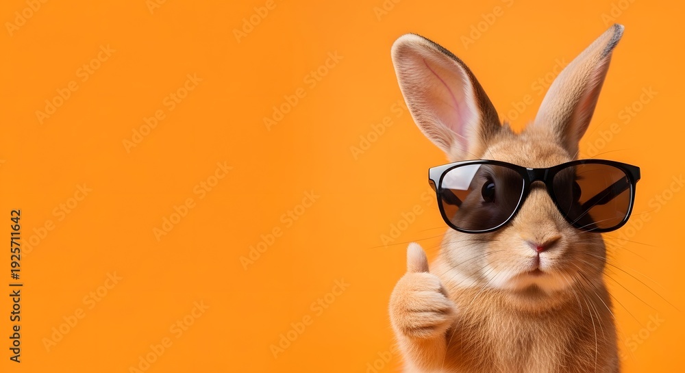 Cool easter bunny wearing sunglasses giving thumbs up on orange background #1925711642