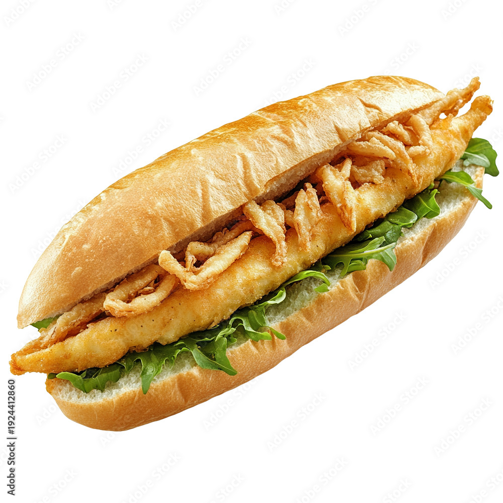 Crispy whitebait omelet sandwich isolated on transparent background #1924412860