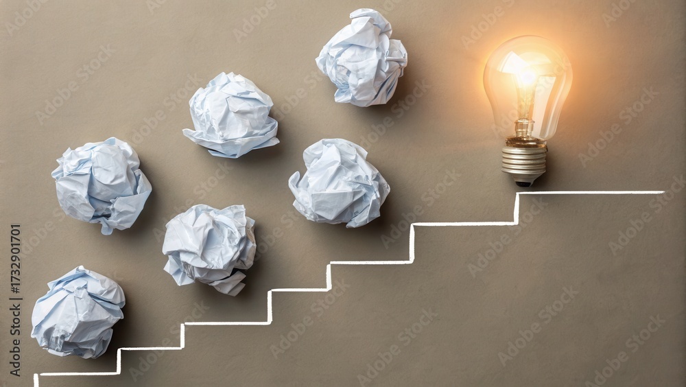 Crumpled Paper Balls Representing Steps Towards Idea Creation #1732901701