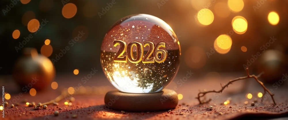 Crystal ball with floating 2026 numerals on dark Holiday backdrop, mystical future vision #1827606684