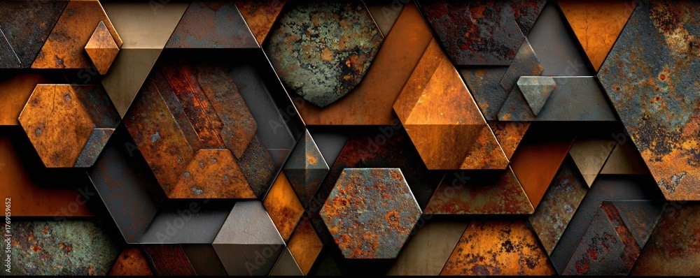 cubistic rusty polygonal background, abstract geometric orange wall, polygonal art texture in warm tones #1769159652