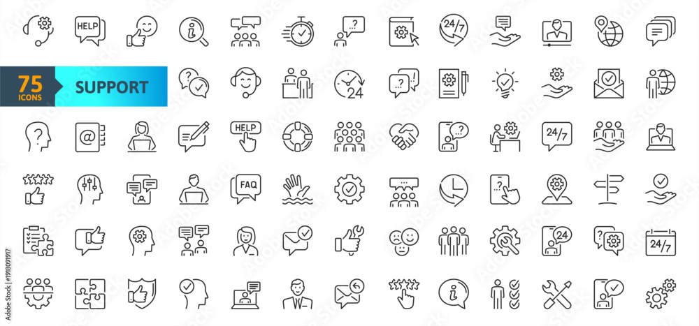 Customer Service, Support and Help - thin line web icon set. Outline icons collection. Online Help, Helpdesk, Quick Response, Feedback and more #1918091917