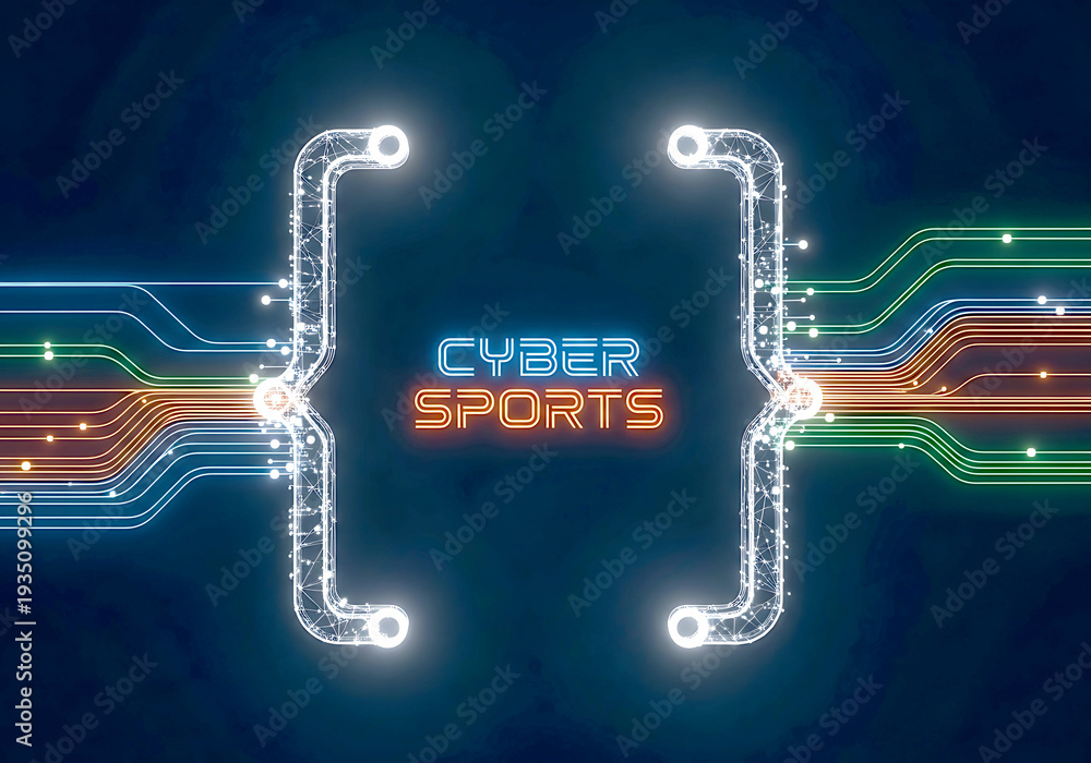 Cyber sports bracket graphic with glowing circuit board lines #1935099296