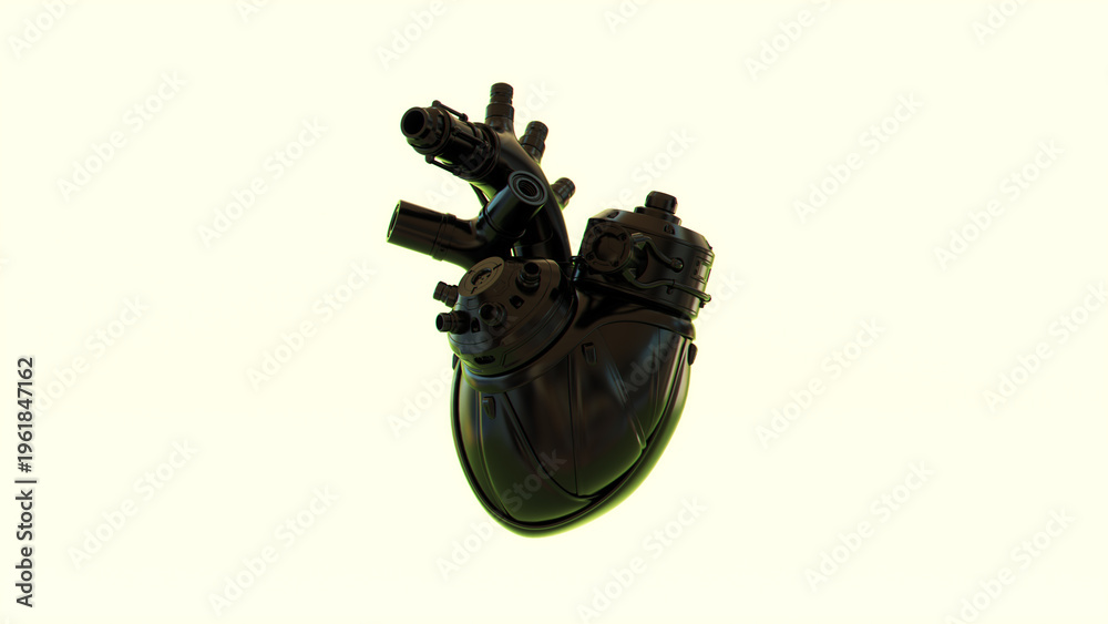 cyborg heart biomechanical mechanical machine artificial robotic futuristic technology science fiction 3d illustration #1961847162