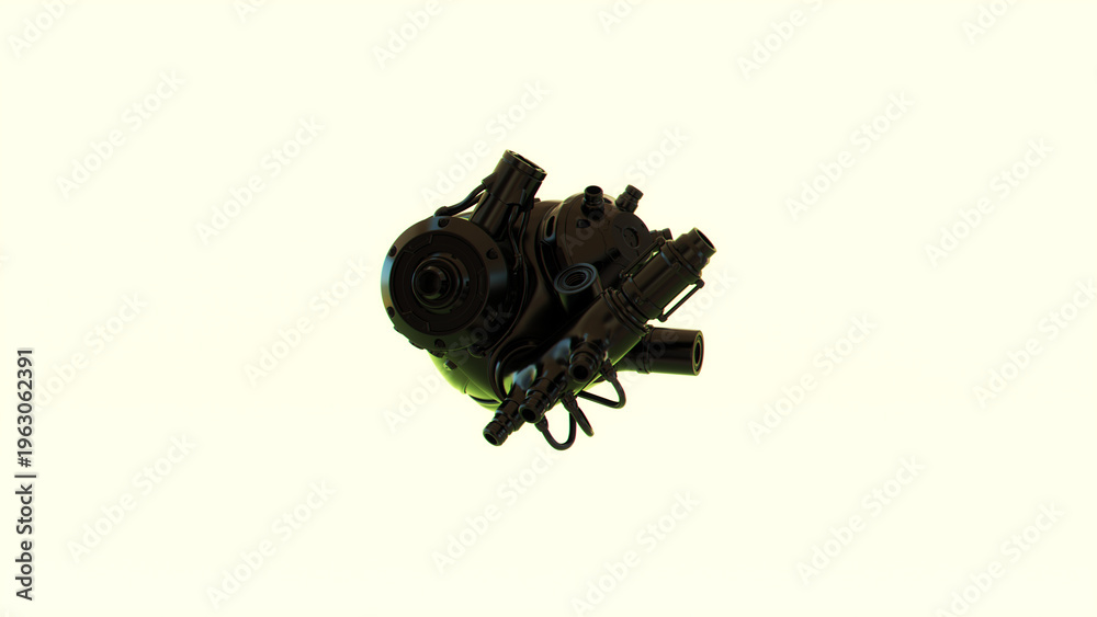 cyborg heart biomechanical mechanical machine artificial robotic futuristic technology science fiction 3d illustration #1963062391