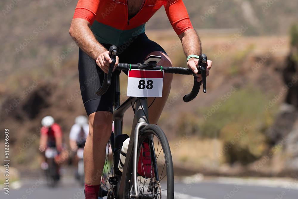 Cycling competition,cyclist athletes riding a race, climbing up a hill on a bicycle #512296503